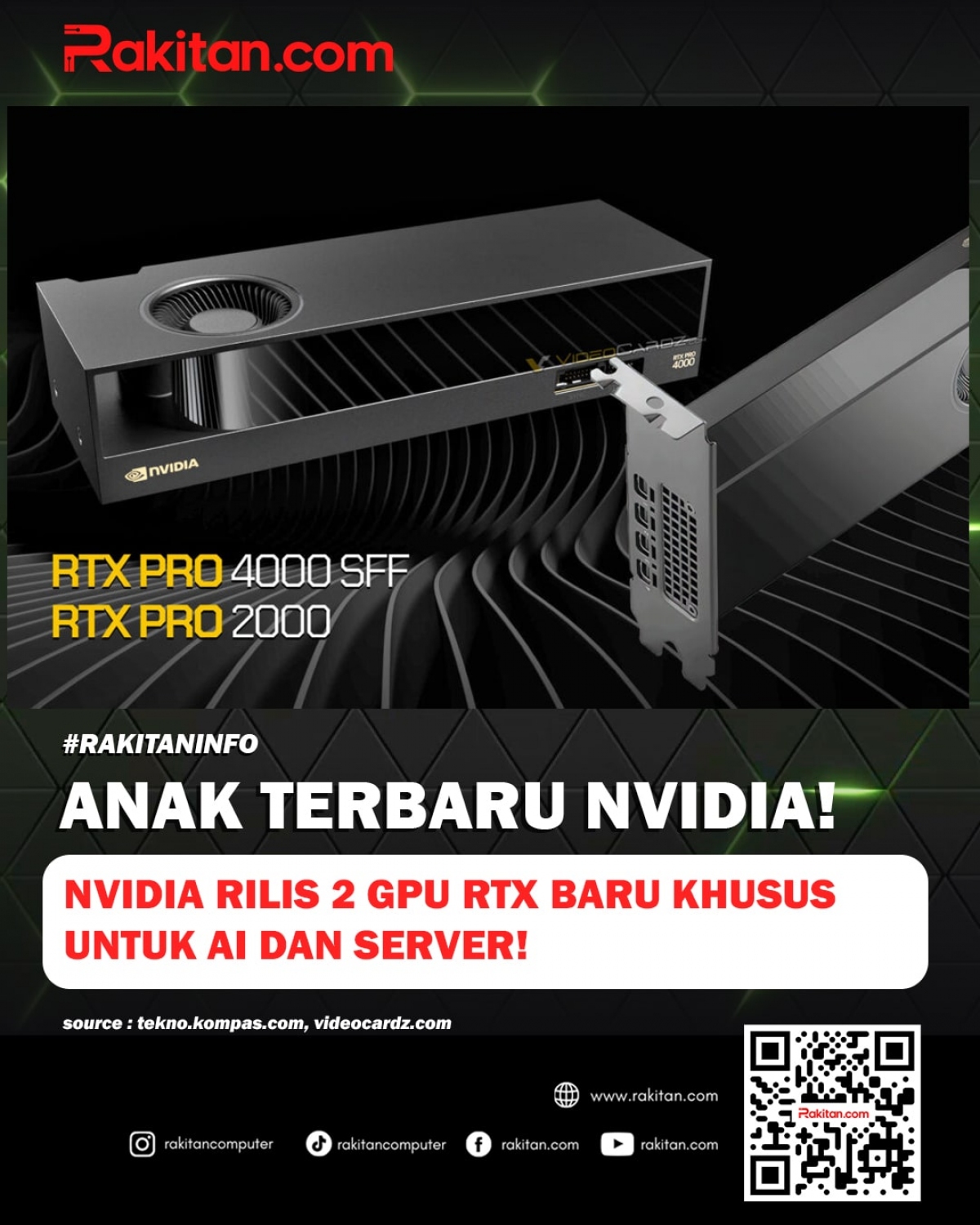 GPU terbaru berarsitektur "Blackwell" yang akan dirilis Nvidia yaitu RTX Pro 4000 SFF (Small Form Factor) dan RTX Pro 2000 di buat khusus untuk kebutuhan kecerdasan buatan (AI), desain, dan komputasi profesional, terutama di PC server atau workstation. Konsumsi daya maksimal (TDP) dari dua GPU ini cuma 70 watt, jadi walaupun bisa untuk gaming tapi performanya tidak akan optimal.